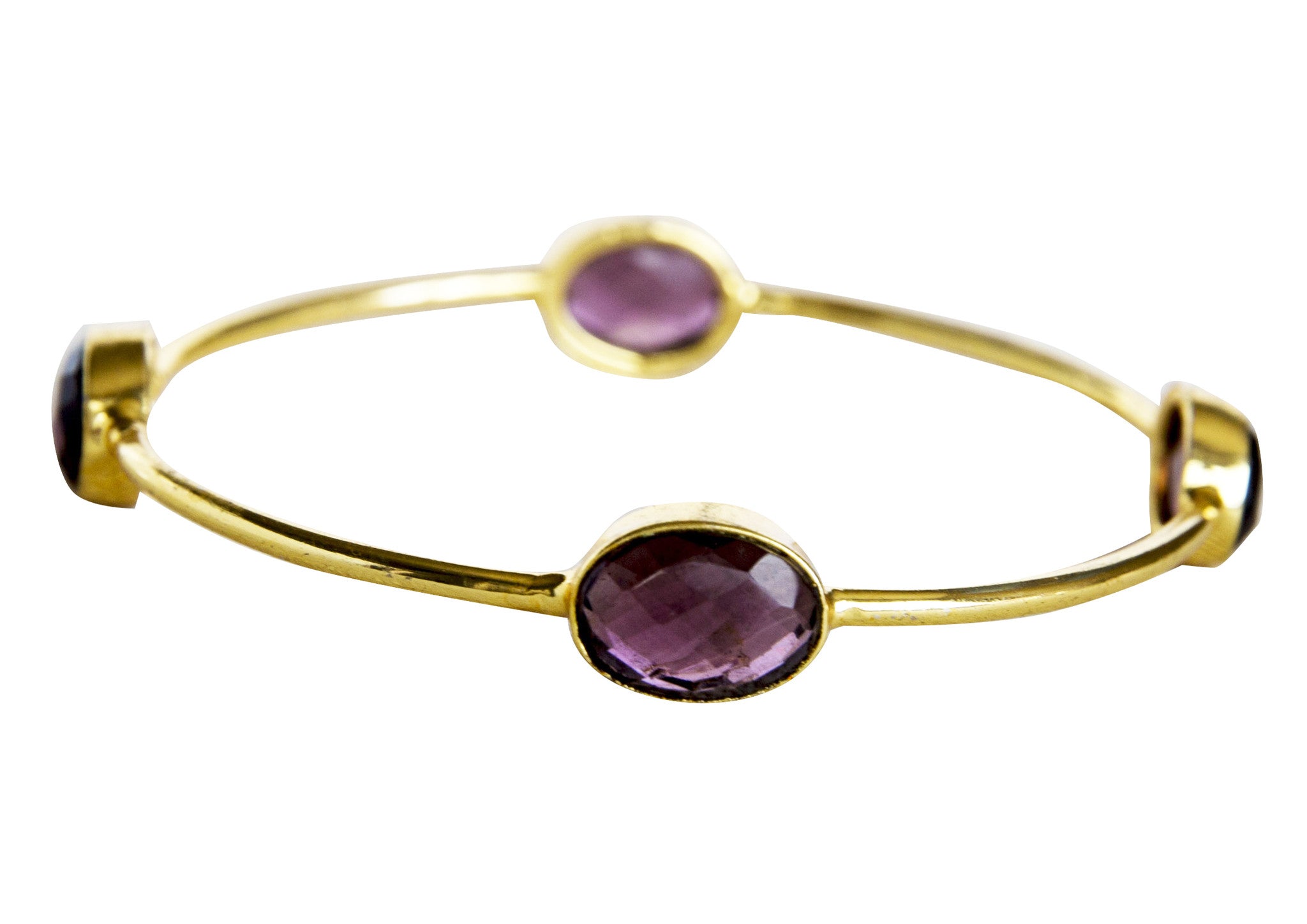Adorn your hand with this Classic, 4 clustered Amethyst Bangle that looks great on its own or can be stacked with our other stone bangles.